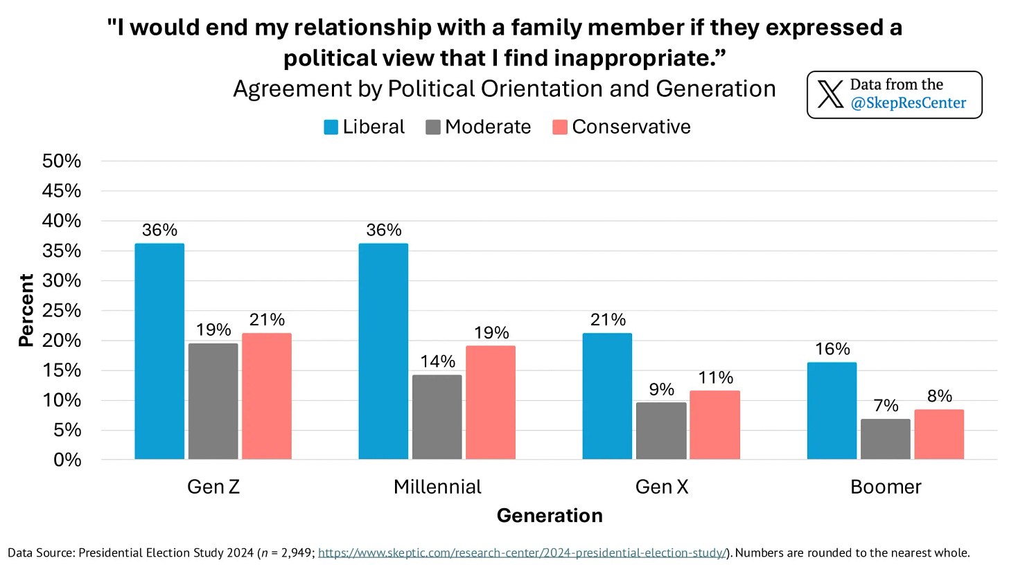 Leftists don’t think this way. They are loyal to their tribe above everything else. If the needs of the tribe are in conflict with their friends, families, employers or basic moral principles, those will be sacrificed in a heartbeat. If you see a story about a child cutting off their parents over politics you don’t need to read it to know that the child was a fanatical leftist cutting off their conservative parents, because it usually is.